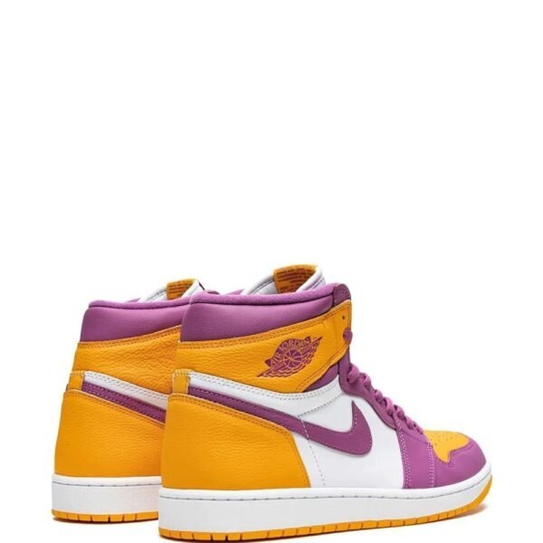 The Air Jordan 1 High OG “Brotherhood” honours Michael Jordan’s fraternity, Omega Psi Phi – that he joined during his days at the University of North Carolina. This sneaker is dressed in a university gold, light Bordeaux, and white colour scheme. It has white leather side panels, nylon tongues, and midsole paired with a gold tone and purple remembering the colours of the fraternity. Underneath, a two-toned rubber outsole adds comfort to the design.