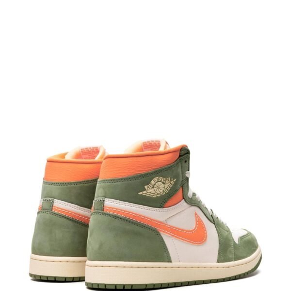 The Air Jordan 1 High OG Craft “Celadon” is a luxe iteration of the iconic sneaker by Jordan Brand. The combination of premium materials, including a white leather base, olive green suede overlays, and a Bright Mandarin leather Swoosh, make for a striking look while the aged finish on the midsole gives the shoe a classic, retro feel.